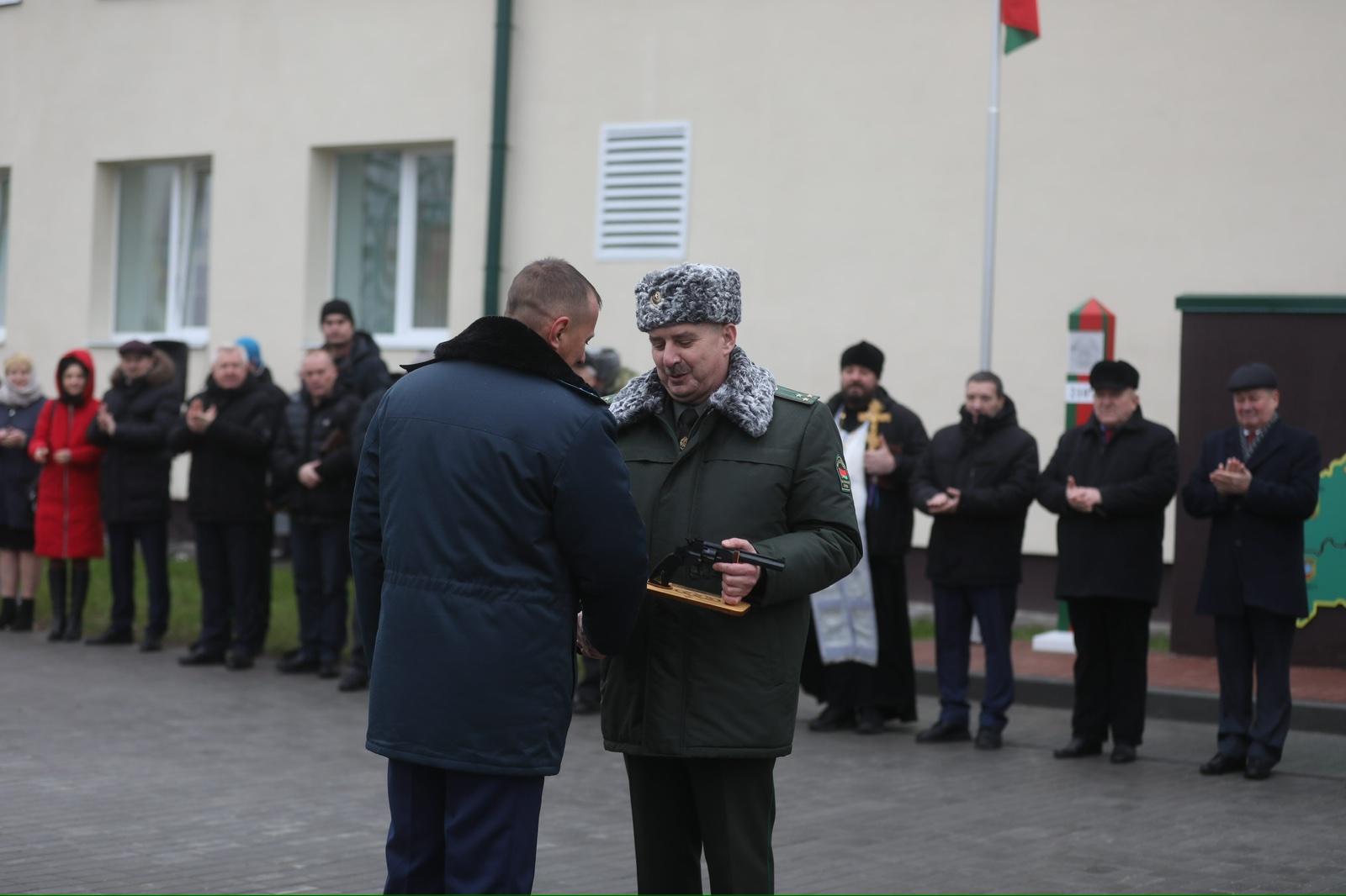За плодотворную совместную деятельность с органами пограничной службы, оказание помощи в выполнении задач, возложенных на органы пограничной службы, по участию в проведении государственной пограничной политики государственный строительный инспектор Павел Пискун был награждён на торжественном открытии ценным подарком.