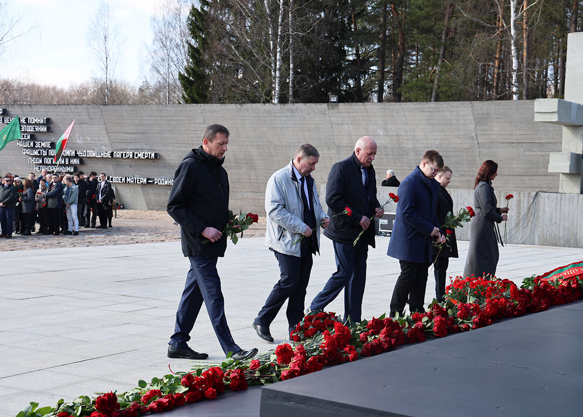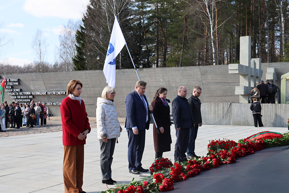 Сотрудники центрального аппарата комитета, департаментов по энергоэффективностии и контроля и надзора за строительством, БелГИМ, БелГИСС, БГЦА, «Главгосстройэкспертизы», Инспекции Госстандарта по Минской области и г. Минску, ОАО «УПНР», Борисовского, Молодечненского и Слуцкого ЦСМС возложили цветы к Вечному огню в мемориальном комплексе.