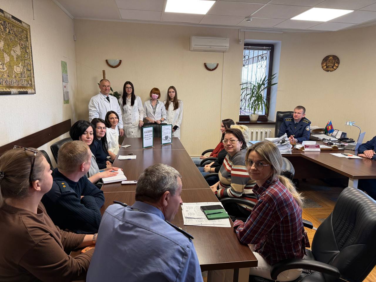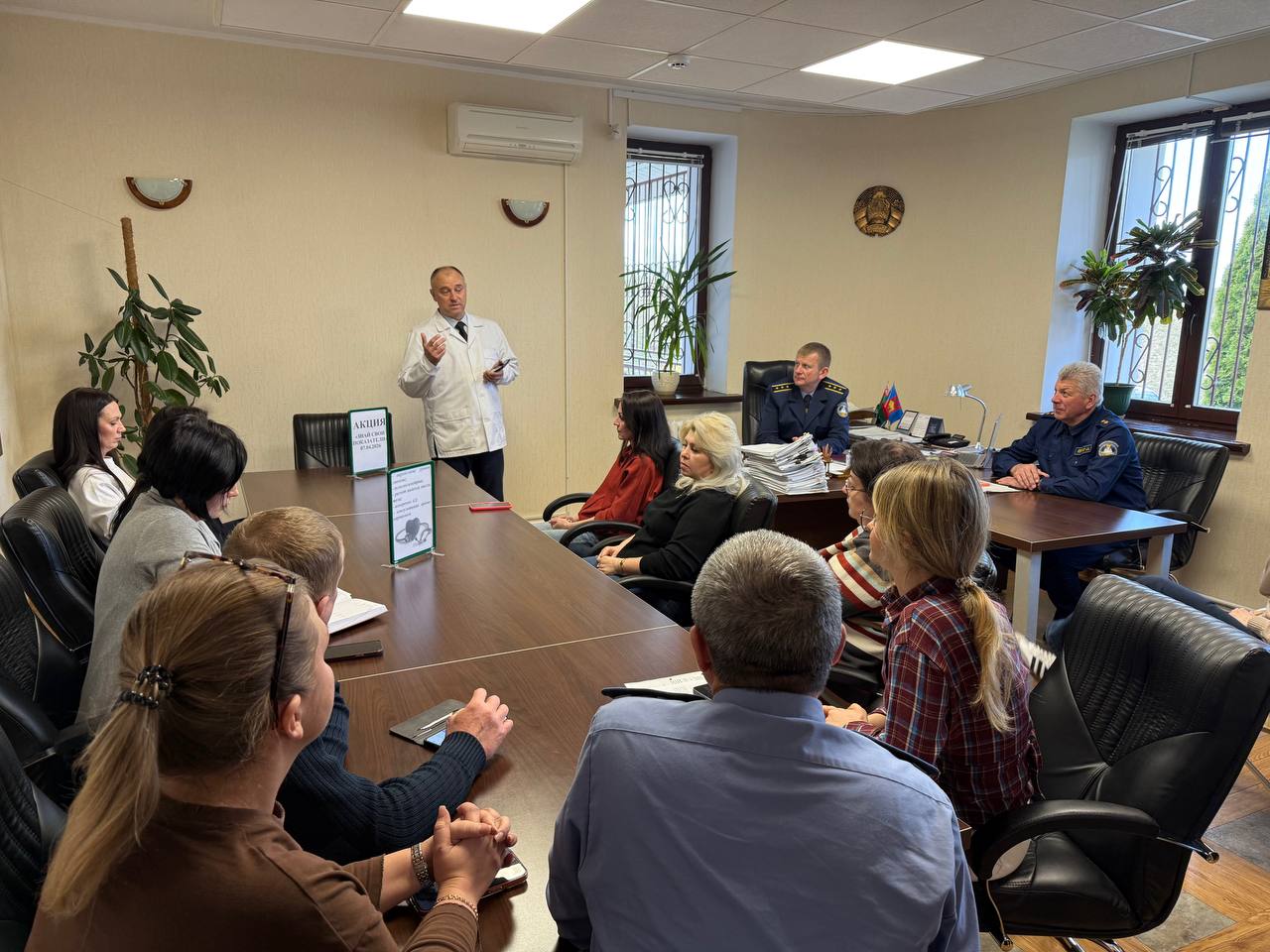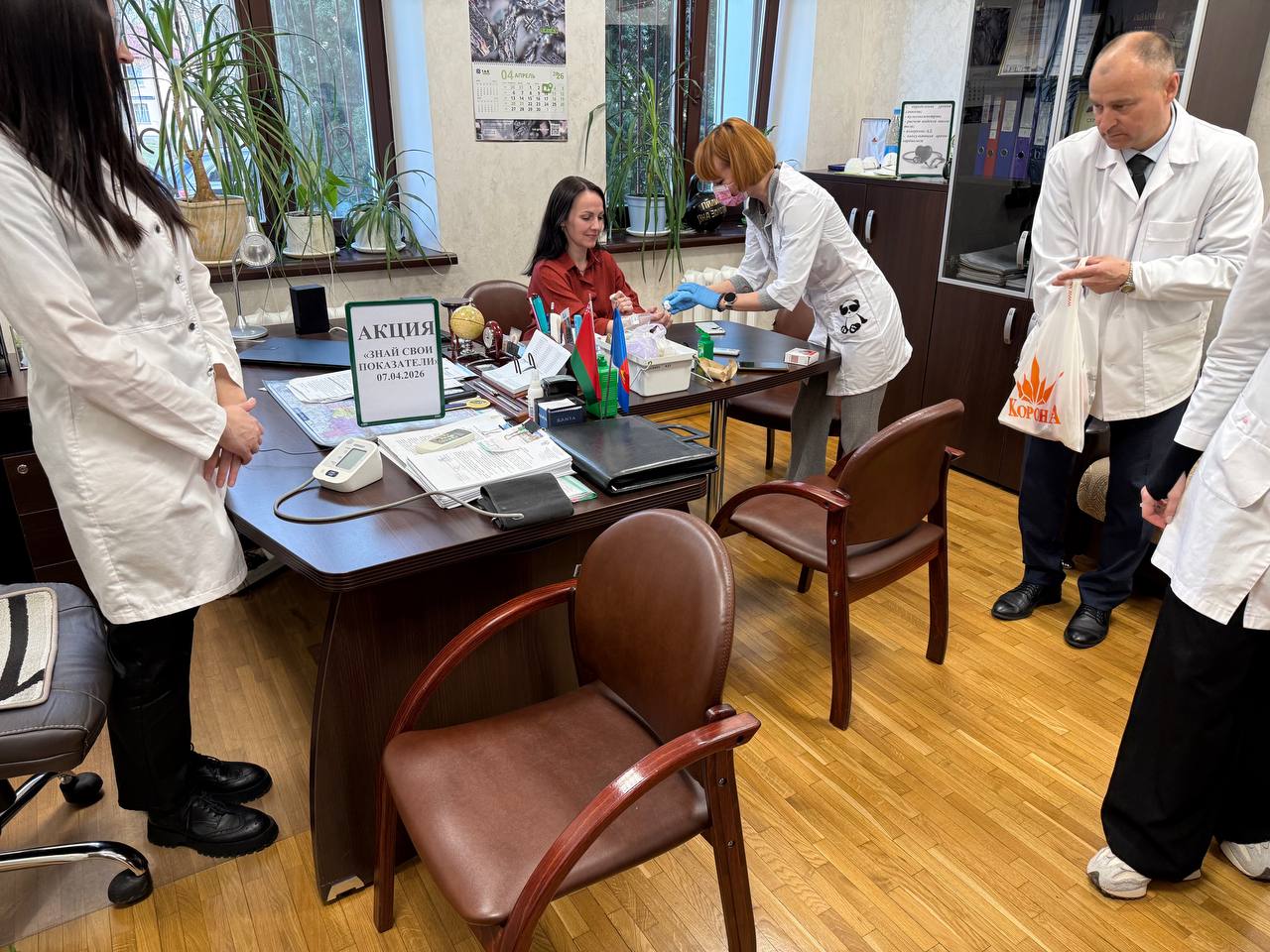 07.04.2026 г. в инспекции Департамента контроля и надзора за строительством по Брестской области в рамках Всемирного дня здоровья проведена акция «Знай свои показатели» с приглашенными медицинскими работниками УЗ «Брестская городская поликлиника #2». была организована консультативно-диагностическая площадка с проведением экспресс-анализов на уровень глюкозы в крови, измерение АД, расчет индекса массы тела, пульсоксиметрию, раздача информационных материалов по медицинской тематике. По всем вопросам данной тематике были получены исчерпывающие ответы от гл. врача поликлиники Никитюка Леонида Алексеевича.