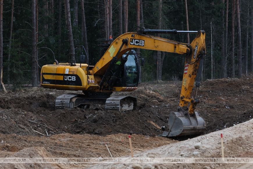 "Подготовительные работы на этом участке начались летом прошлого года. Прежде всего предстояло произвести вырубку деревьев в прилегающем лесном массиве. Если говорить конкретно об участке, где задействован наш трест, то с этой территории было вывезено около 56 тыс. деревьев. Затем выполнялась выкорчевка пней, уборка веток, которые пойдут на щепу: ее мы используем для рекультивации карьера, специально открытого в непосредственной близости от объекта для добычи необходимых материалов. Так, только для устройства насыпи из карьера будет вывезено более 1 млн т грунта", - рассказал производитель работ ОАО "СМТ №8" Владимир Миронович.